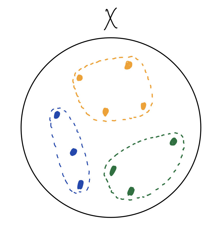 We can now create a function from X to {blue, orange, green} that assigns to each element of X the name of the fiber that it is in.