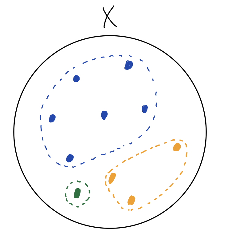 Now we would like to be able to describe a fibration nicely. We begin by giving a name to each fiber. We name ours blue, orange, and green.